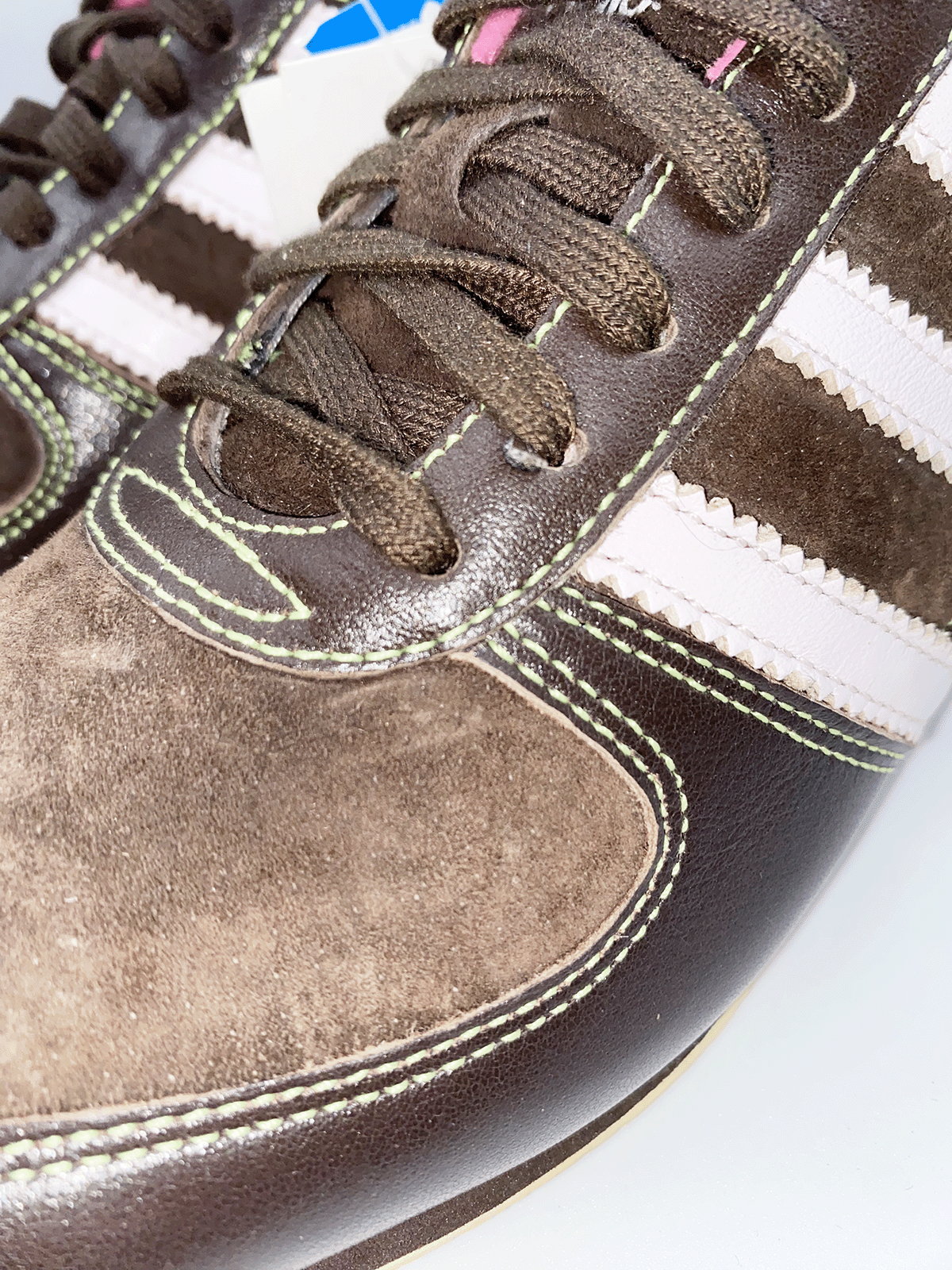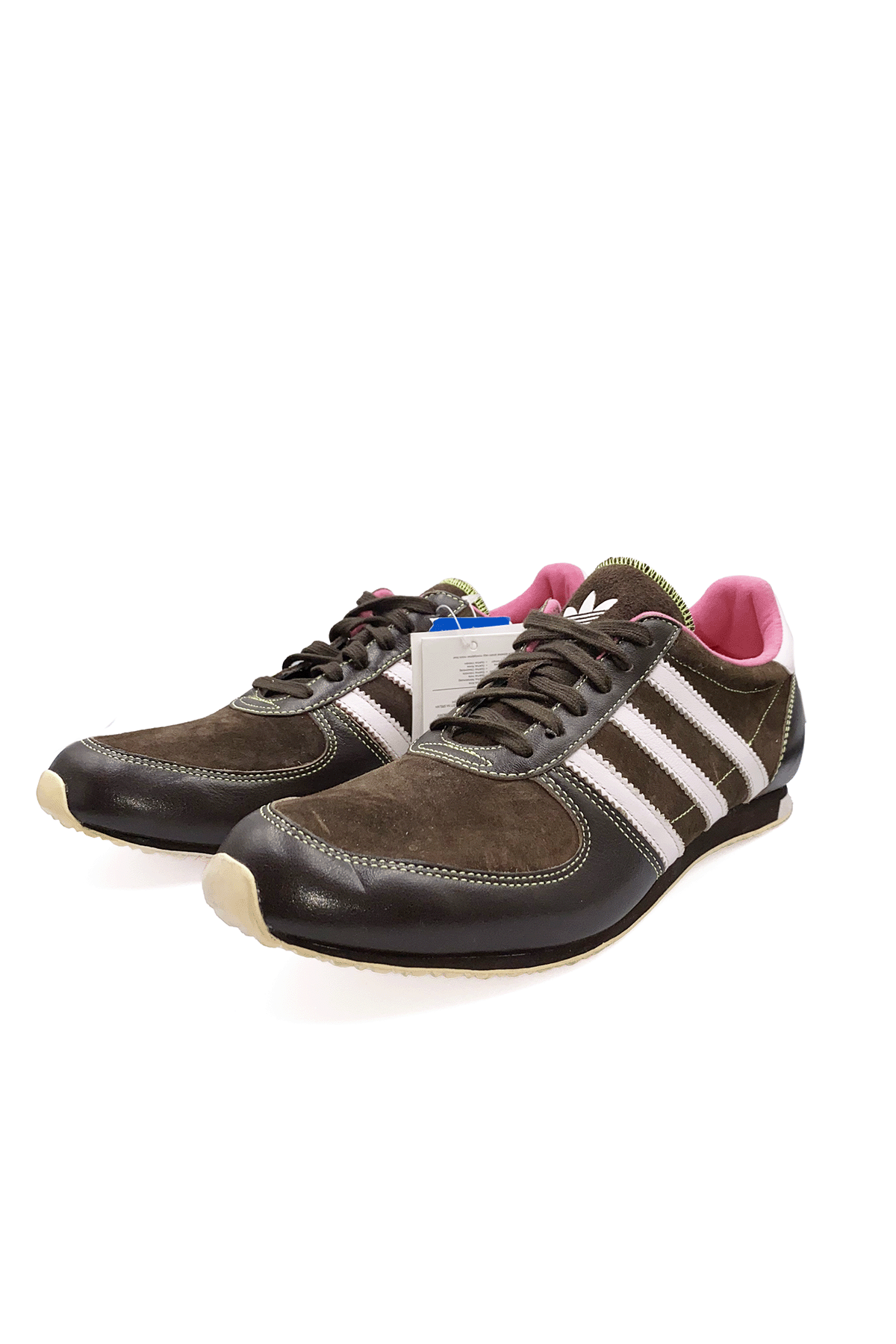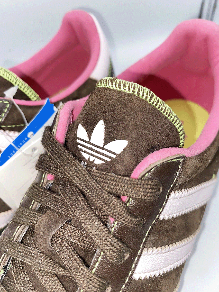 De Adidas Sleek Series is een lijn uit de jaren 2000 waarbij het allemaal draait om slanke silhouetten, lage zolen en elegante rondingen. Sneakers met platte zolen zijn weer helemaal terug en ga je deze zomer veel zien. Deze bruine sneaker met roze details zou dan ook helemaal niet uit de toon vallen in de winkels. Toch is dit een vintage classic! De schoen komt uit de jaren 2000. Ik vond hem in het archief van een bekende winkel. Deze slimme winkelier bewaarde de schoen op een veilige plek tot het juiste moment. Superleuk in combinatie met een oversized wijde jeans of een cargo broek.