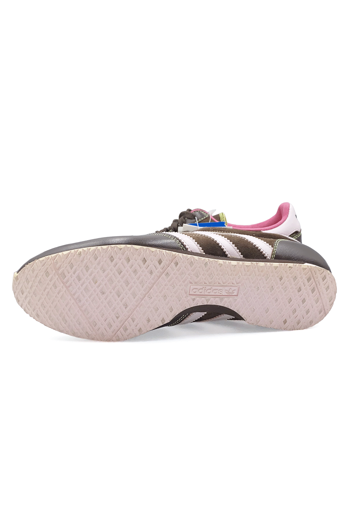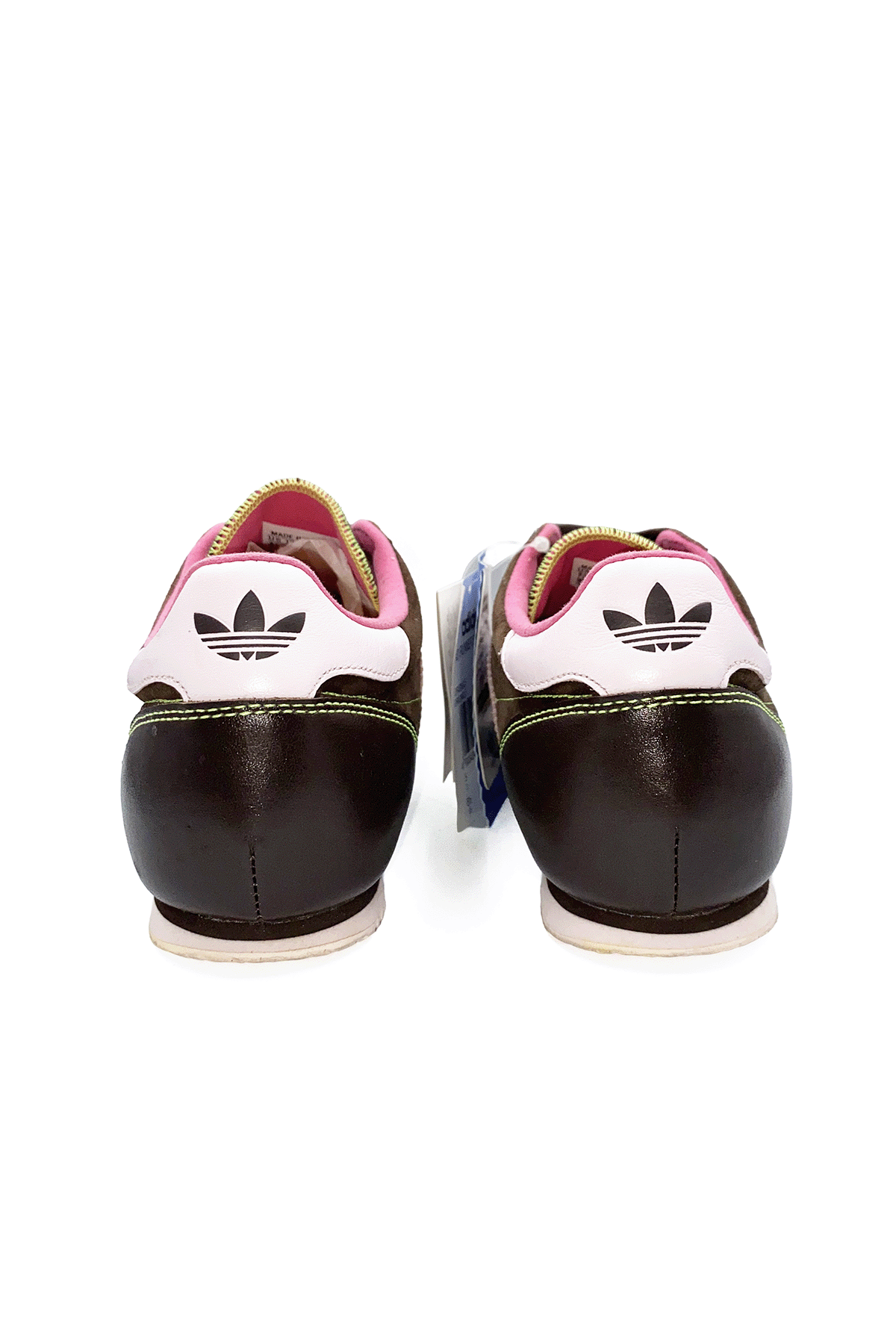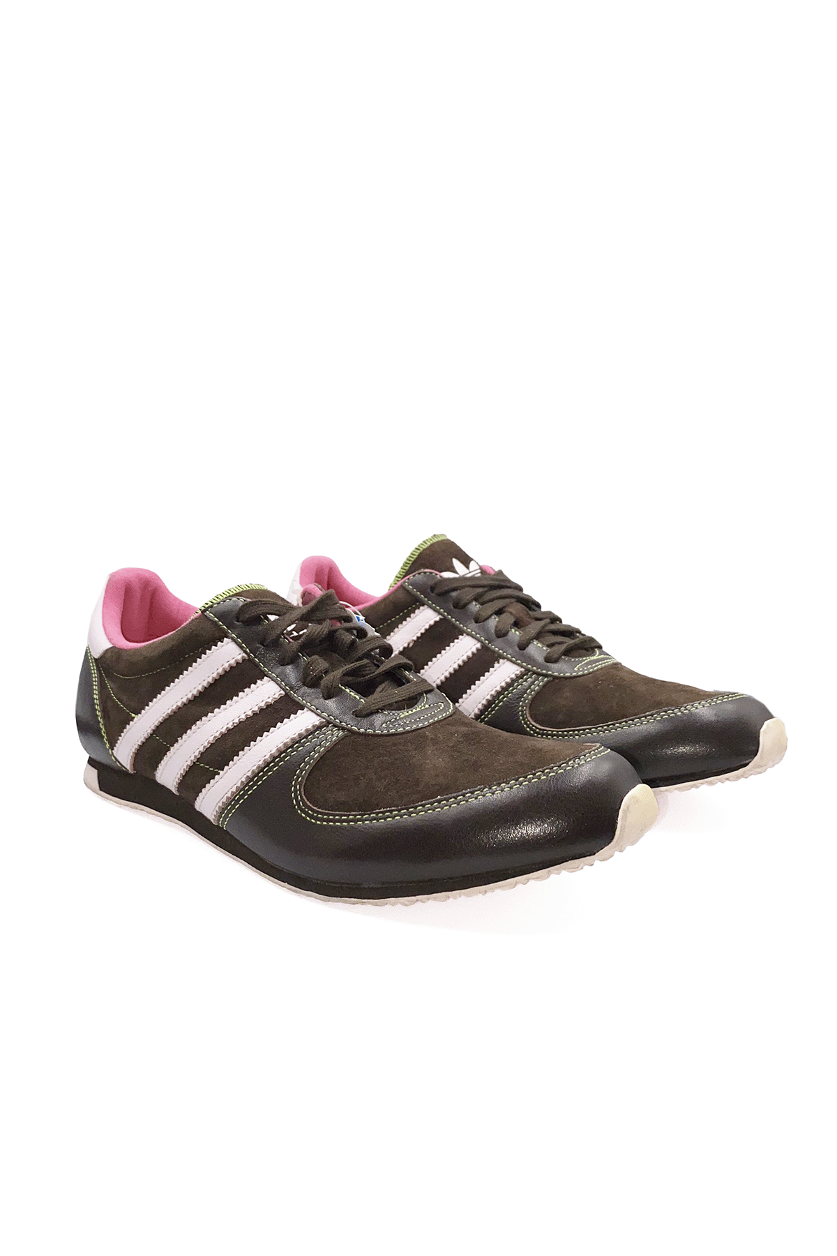 De Adidas Sleek Series is een lijn uit de jaren 2000 waarbij het allemaal draait om slanke silhouetten, lage zolen en elegante rondingen. Sneakers met platte zolen zijn weer helemaal terug en ga je deze zomer veel zien. Deze bruine sneaker met roze details zou dan ook helemaal niet uit de toon vallen in de winkels. Toch is dit een vintage classic! De schoen komt uit de jaren 2000. Ik vond hem in het archief van een bekende winkel. Deze slimme winkelier bewaarde de schoen op een veilige plek tot het juiste moment. Superleuk in combinatie met een oversized wijde jeans of een cargo broek.