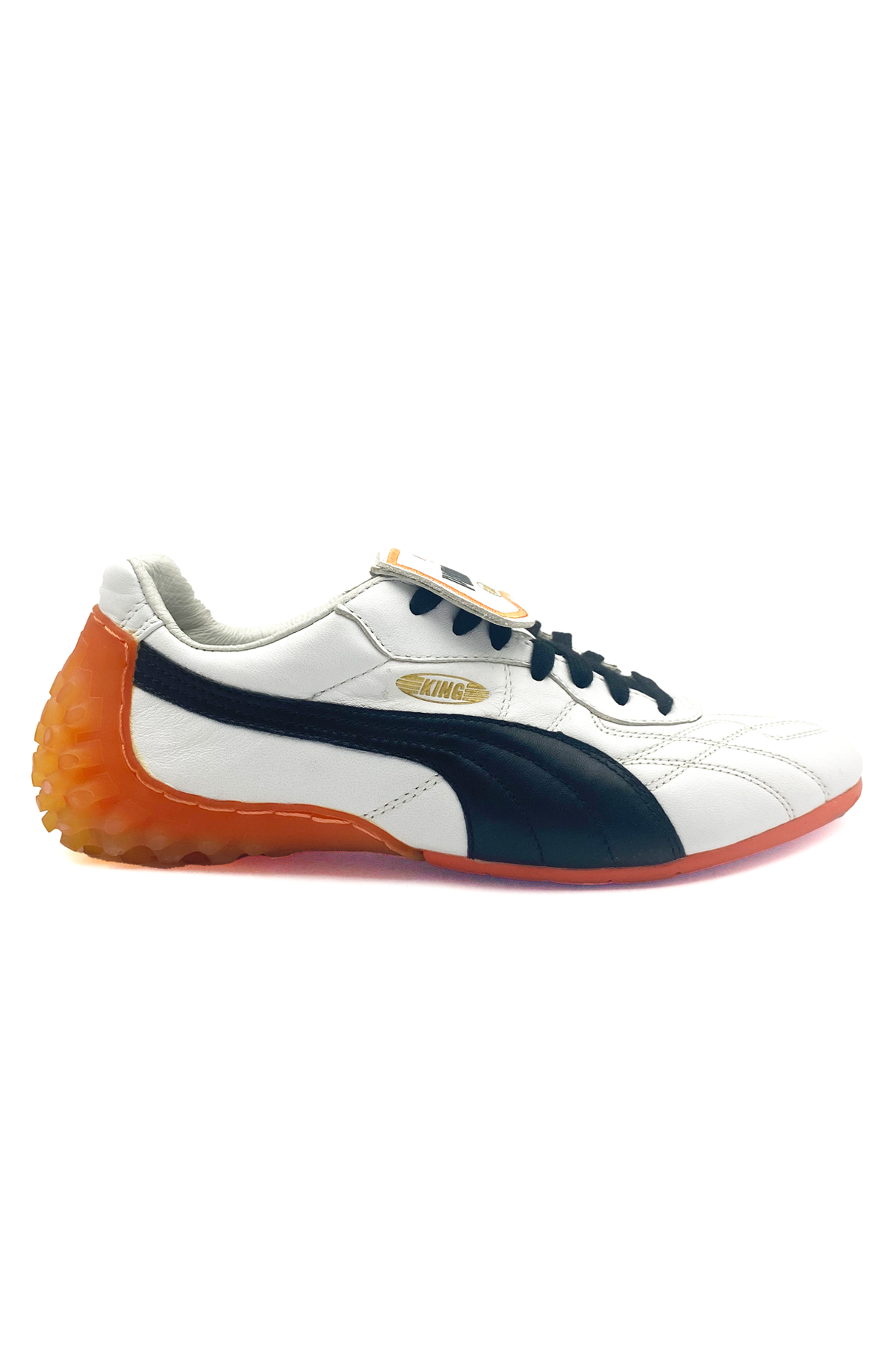 Voor een vintage esthetiek kies je dit najaar voor sneakers met een lage zool. De gevouwen tong geeft deze Puma King LS sneakers dat beetje extra uitstraling waar je naar op zoek bent. De kleurstelling wit-zwart in combinatie met de rubberen buitenzool maakt de Puma King LS makkelijk te combineren met je garderobe. Dit model is geïnspireerd op een voetbalschoen en is een knipoog naar de jaren 00.